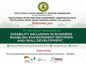 The Policy Dialogue on “Disability-Inclusive Business Enabling Environment (BEE) Reforms and Skills Development for Business Groups with Disabilities in Plateau State” successfully took place on 5 June 2025 at the New Government House, Jos.